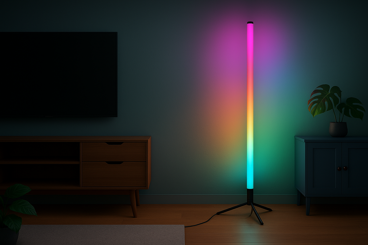 Transform your space with vibrant colors and modern design in this stunning floor lamp that brings both convenience and atmosphere to every occasion.